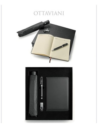 Set vera pelle con taccuino, penna, ombrello, pennetta Usb Ottaviani